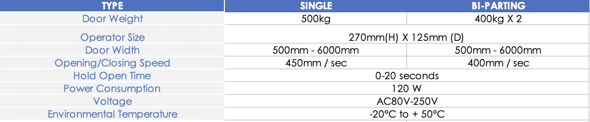 Enforce EF-H8 super heavy duty auto sliding door operator up to 400kg per leaf, heavy duty, robust and silent.