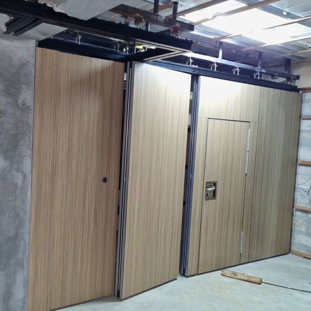 80 series operable partition is made of high quality anodized aluminum frame with composite materials. The panel has a standard thickness of 80mm and a width up to 1230mm and a maximum height of up to 5500mm and acoustic insulation properties up to 48db.