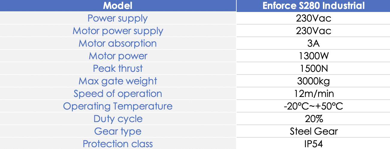 The S280 is a super heavy-duty sliding gate model using 230Vac power for all industrial sliding gate needs which will deliver maximum power and reliability.