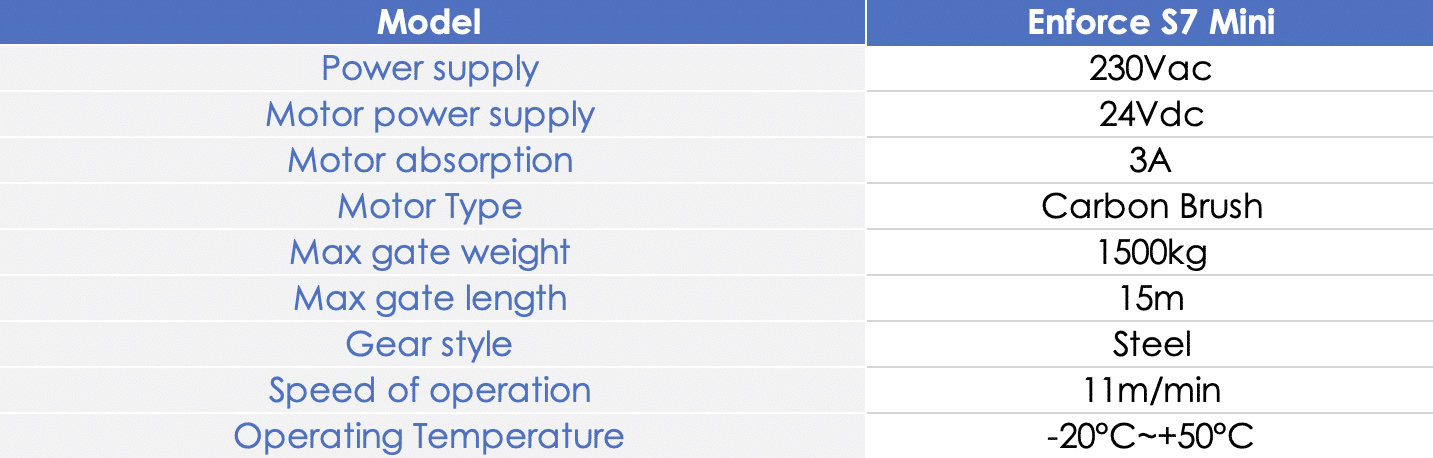The S7 Mini is a DC robust sliding gate system with adaptability to all conditions and reliability over time.