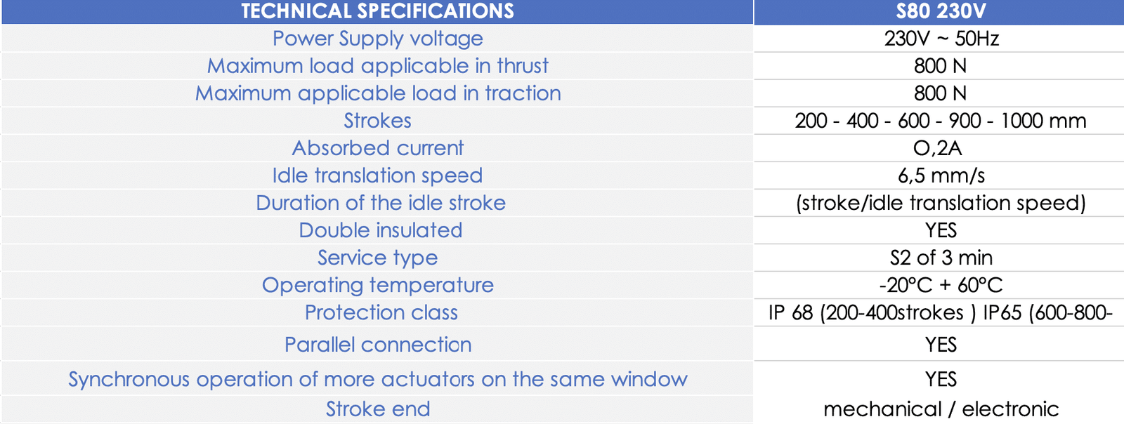 The S80 is a Linear electric actuator Topp model S80 for skylights, louvres, casement windows etc.